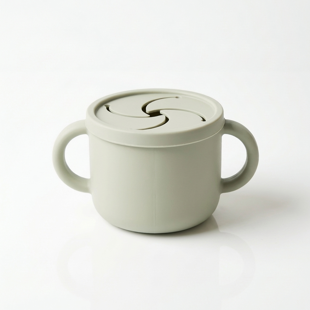 Fini les miettes partout ! Notre snack cup en silicone alimentaire est conçu pour permettre à bébé de grignoter ses en-cas préférés sans en mettre partout, que ce soit à la maison, en voiture ou en promenade.